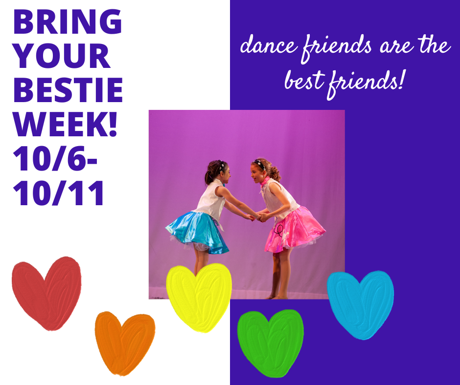 October 6-11th, dancers are invited to bring a friend to class with them! Dancers will receive an invitation to give to their friends-please have your friends fill out the back and bring to class with them. We can’t wait to dance together!