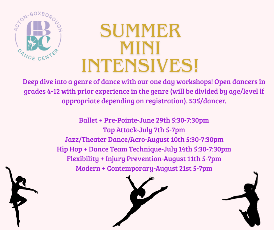 Deep dive into a genre of dance with our one day intensives! Open to dancers in grades 4+, dancers should have dance training in the genre of dance prior to enrolling.